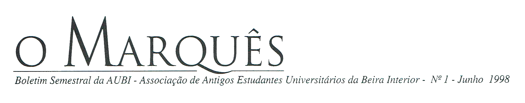Com o lançamento do presente número pretende-se a institucionalização, com carácter regular, do “Marquês”. Fazendo votos para que venha a ser um dos elos de ligação da AUBI com os antigos alunos da Universidade da Beira Interior ou das Instituições que a precederam e ainda com docentes e funcionários que por qualquer vínculo, prestam ou prestaram serviço na Instituição, aproveito esta oportunidade para saudar cordialmente todos os Associados e desejar os maiores êxitos aos futuros corpos sociais.